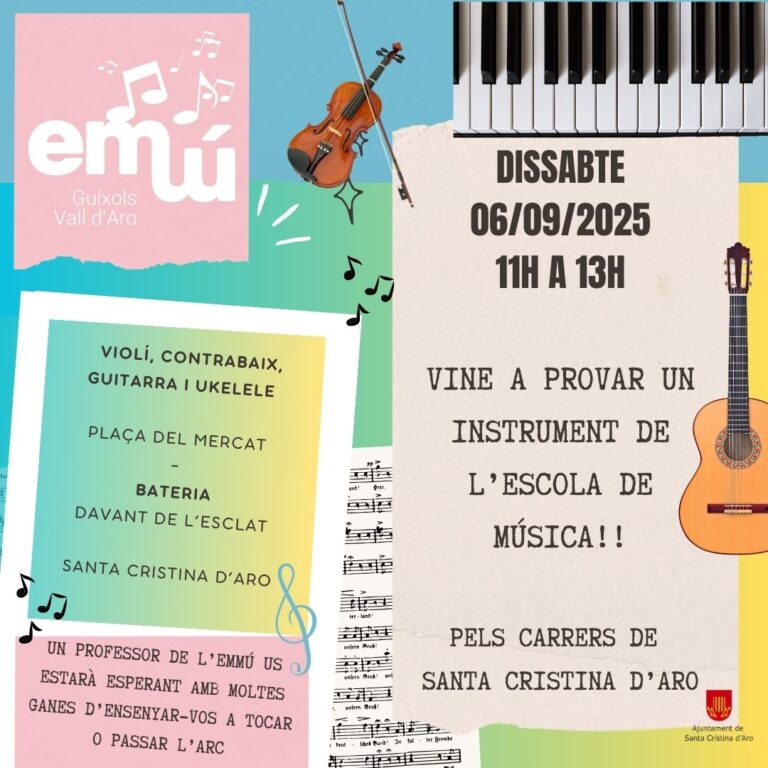 Aquest dissabte 6 de setembre de 2025 pots venir a provar un instrument a Santa Cristina d’Aro! Vols venir?